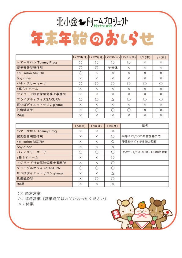 ドリプロメンバー店の年末年始営業